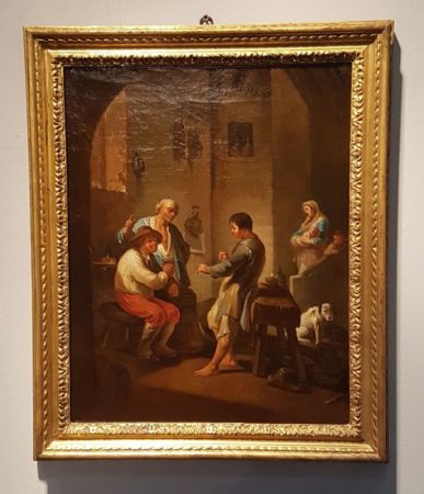 Oil painting on canvas "genre scene", Bolognese school, mid-18th century, Dimensions: 46 X 55 cm.