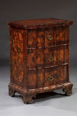 Petit meuble rare, entièrement plaqué en noyer et loupe de noyer.
