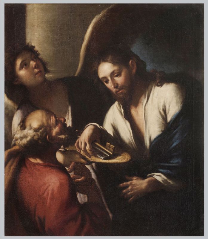Dipinto olio su tela Gesù consegna le chiavi a San Pietro