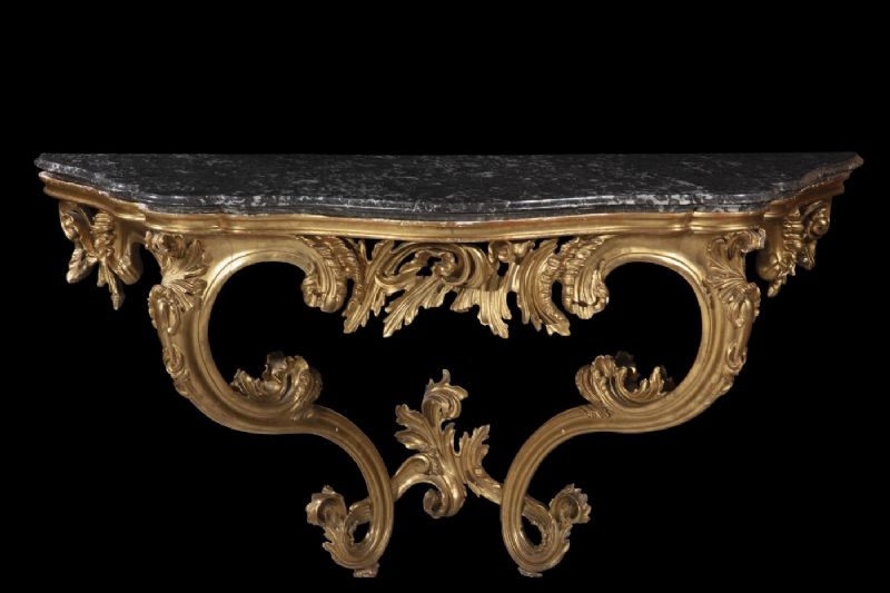 Consolle in legno intagliato e dorato con piano in marmo