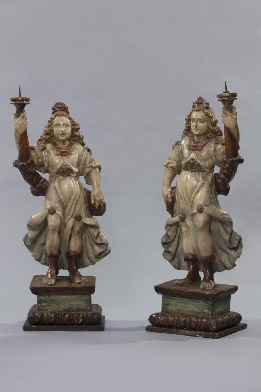 Coppia di sculture portaceri